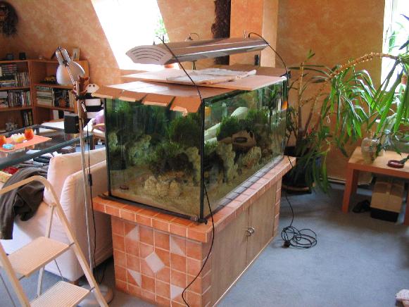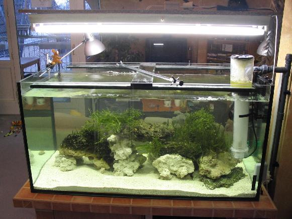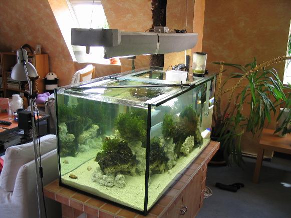 erste lebende Stein ist im Aquarium, es geht voran. Noch weiss man