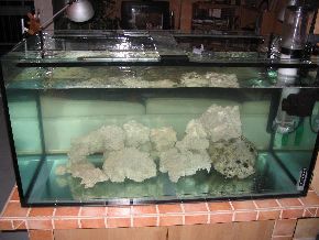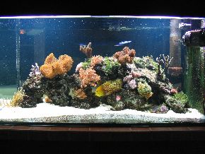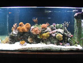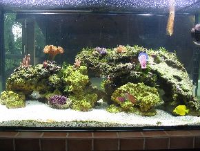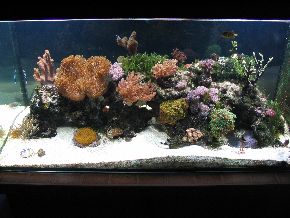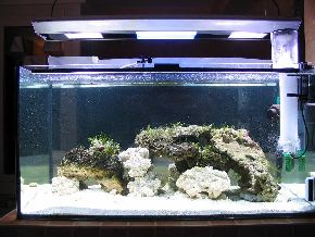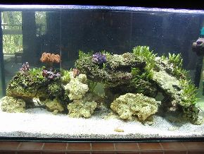 ersten Fische, Weichkorallen, Anemonen und Garnelen haben das Becken