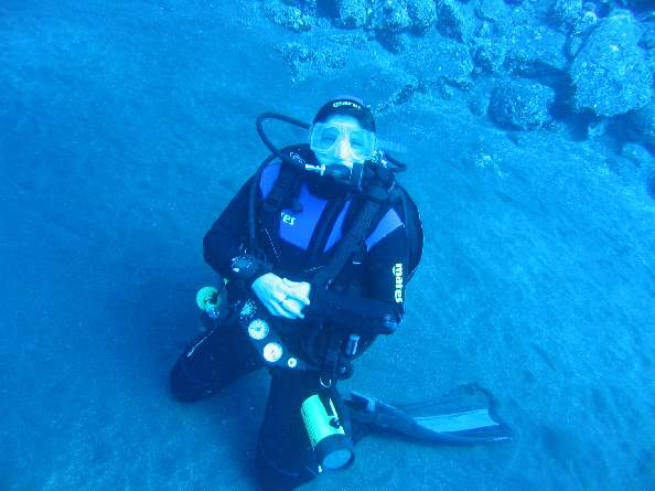 Kleine beim Tauchen mit 6mm Leihanzug, unbedingt notwendig bei 22°C
