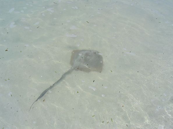 kleiner Federschwanzrochen in der Lagune, ganz nah am Strand.