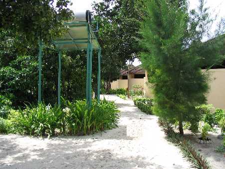 Barfußinsel. Überall sind kleine Gärten angelegt, auch