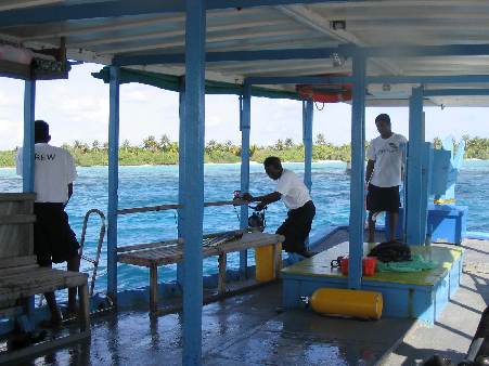 Dhonicrew hift nach einem Bootstauchgang beim Einsteigen