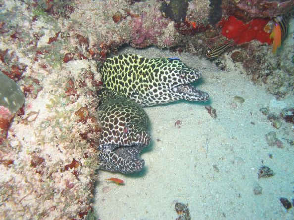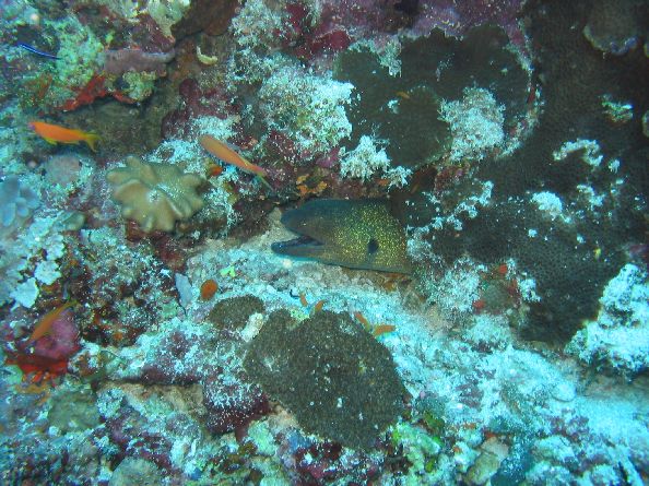 Riesenmuräne im Riff, eines meiner ersten guten Fotos, noch