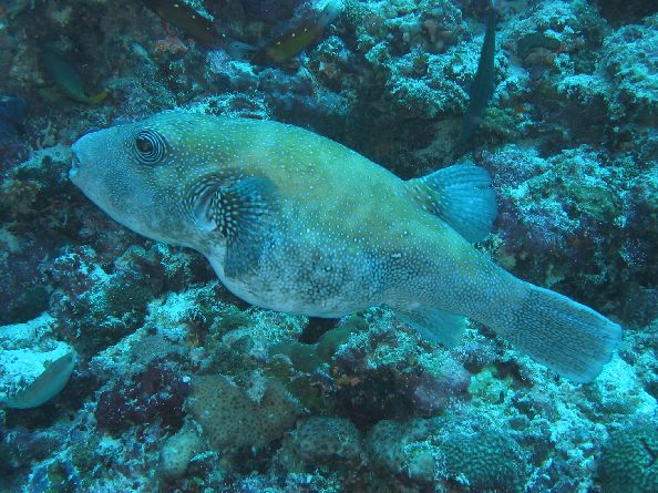 Blaupunkt-Kugelfisch im Riff, der dümpelte da so stationär